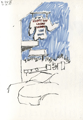 Before using it on the drawing, and really before buying it, I should have paid attention to the specifications and noticed it was neither waterproof nor lightfast. I painted over the pen marks with diluted sumi and noticed the ink running. I thought maybe the ink needed more time to dry so I came back later and tried again. It still ran, and turned a pinkish/purplish color that indicates a dye-based ink that will likely discolor when exposed to light (based on my previous experience with non-lightfast pens).